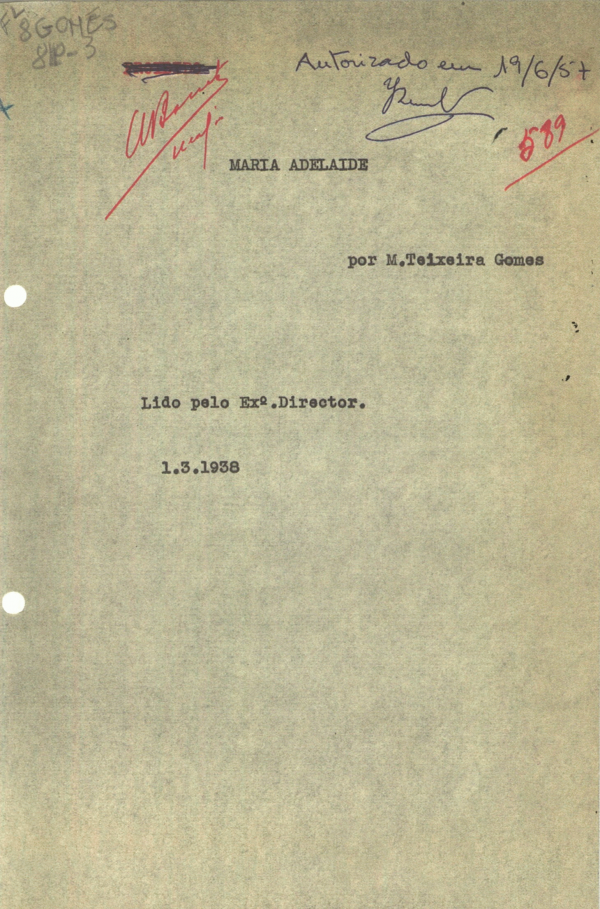 Esta obra foi apreendida e proibida pela Direção dos Serviços de Censura da Polícia Internacional e de Defesa do Estado (P.I.D.E.), em 1938.